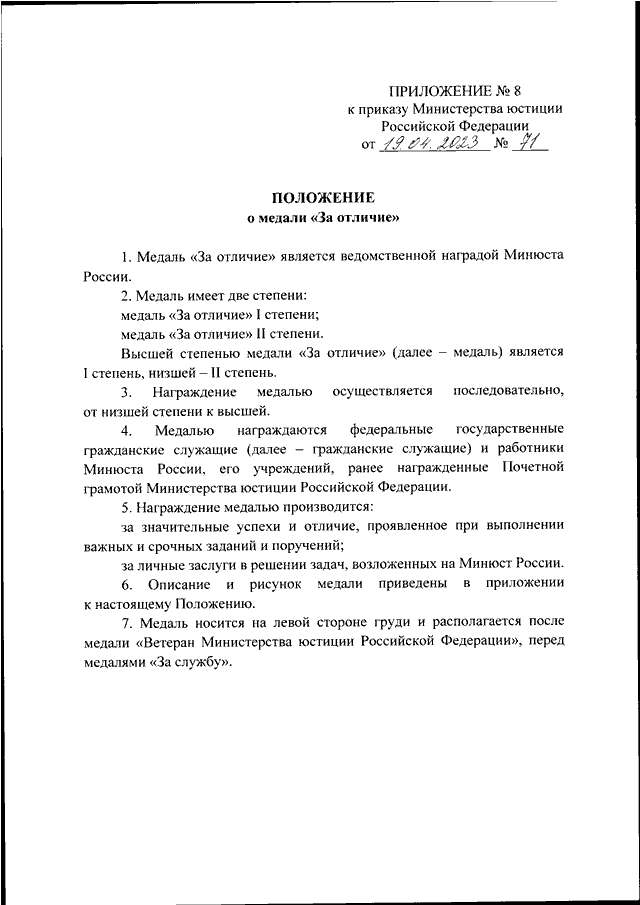 "О ВЕДОМСТВЕННЫХ НАГРАДАХ МИНИСТЕРСТВА ЮСТИЦИИ РОССИЙСКОЙ ФЕДЕРАЦИИ"