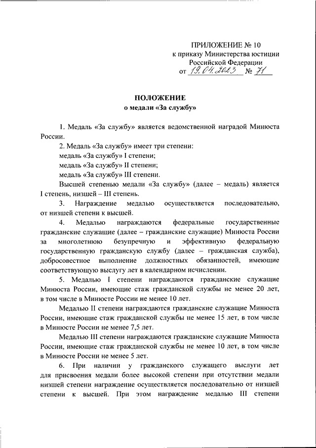 ПРИКАЗ Минюста РФ от 19.04.2023 N 71