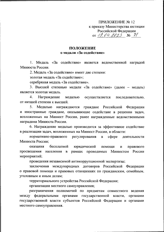 ПРИКАЗ Минюста РФ от 19.04.2023 N 71