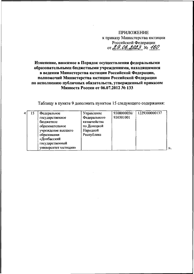 ПРИКАЗ Минюста РФ от 29.06.2023 N 160