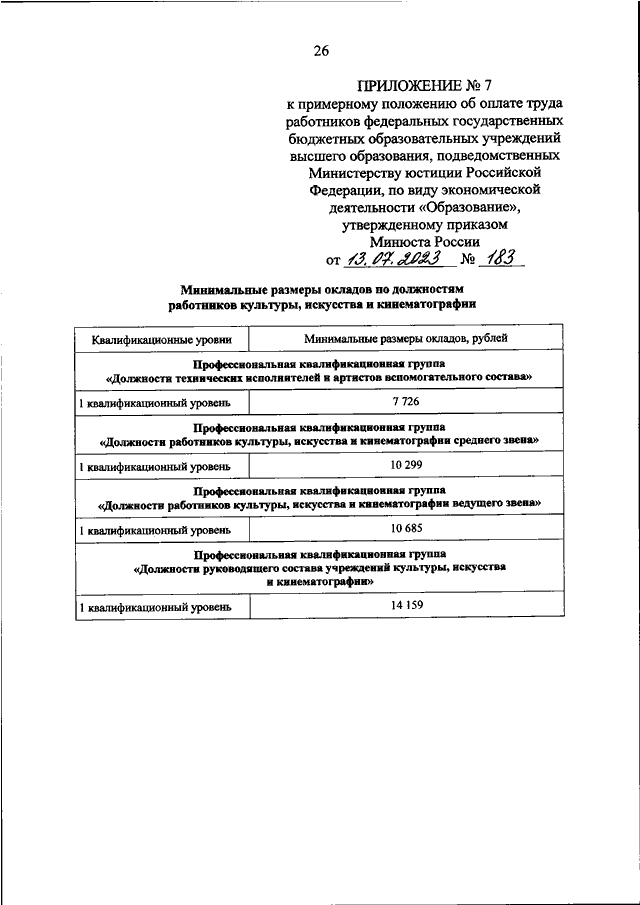 ПРИКАЗ Минюста РФ от 13.07.2023 N 183