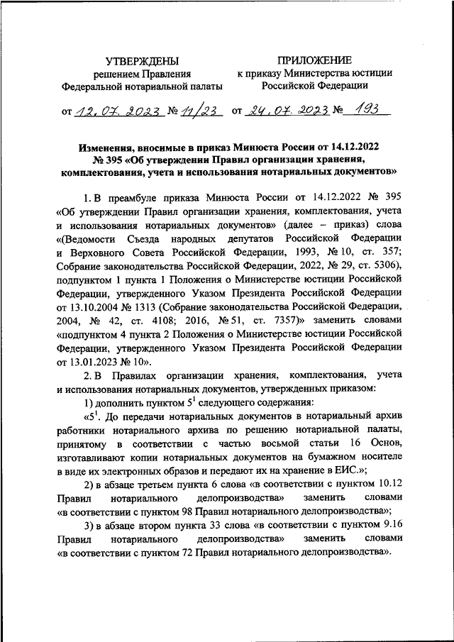 "О ВНЕСЕНИИ ИЗМЕНЕНИЙ В ПРИКАЗ МИНЮСТА РОССИИ ОТ 14.12.2022 N 395
