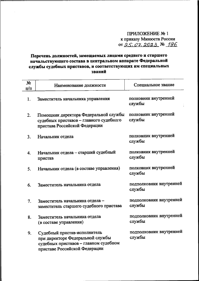 ПРИКАЗ Минюста РФ от 25.07.2023 N 196