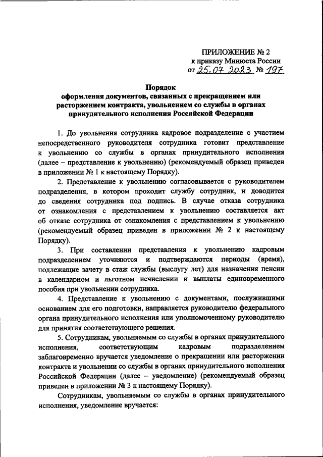 ПРИКАЗ Минюста РФ от 25.07.2023 N 197