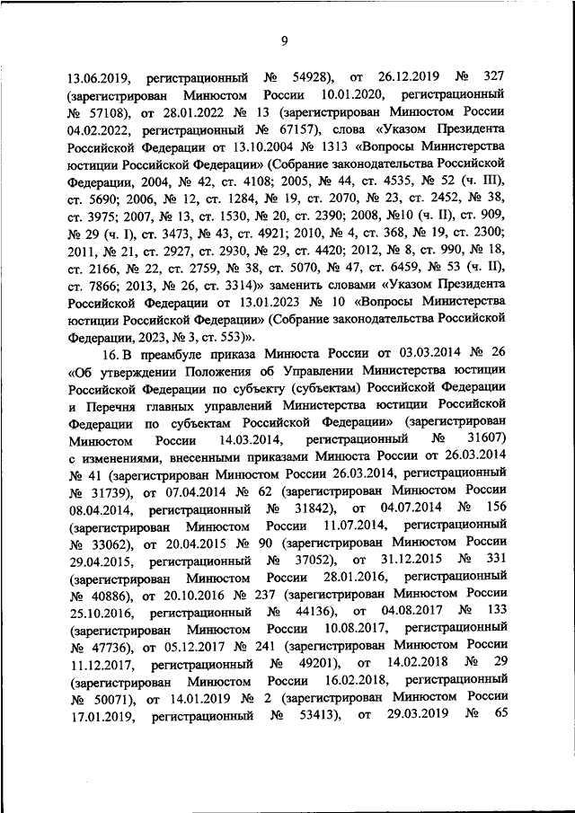 "О ВНЕСЕНИИ ИЗМЕНЕНИЙ В ПРИКАЗЫ МИНИСТЕРСТВА ЮСТИЦИИ РОССИЙСКОЙ ФЕДЕРАЦИИ В СВЯЗИ С ПРИНЯТИЕМ УКАЗА ПРЕЗИДЕНТА РОССИЙСКОЙ ФЕДЕРАЦИИ ОТ 13.01.2023 N 10 "ВОПРОСЫ МИНИСТЕРСТВА ЮСТИЦИИ РОССИЙСКОЙ ФЕДЕРАЦИИ"