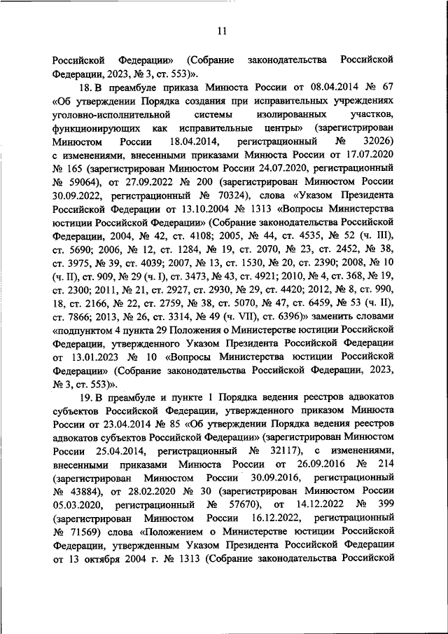 "О ВНЕСЕНИИ ИЗМЕНЕНИЙ В ПРИКАЗЫ МИНИСТЕРСТВА ЮСТИЦИИ РОССИЙСКОЙ ФЕДЕРАЦИИ В СВЯЗИ С ПРИНЯТИЕМ УКАЗА ПРЕЗИДЕНТА РОССИЙСКОЙ ФЕДЕРАЦИИ ОТ 13.01.2023 N 10 "ВОПРОСЫ МИНИСТЕРСТВА ЮСТИЦИИ РОССИЙСКОЙ ФЕДЕРАЦИИ"