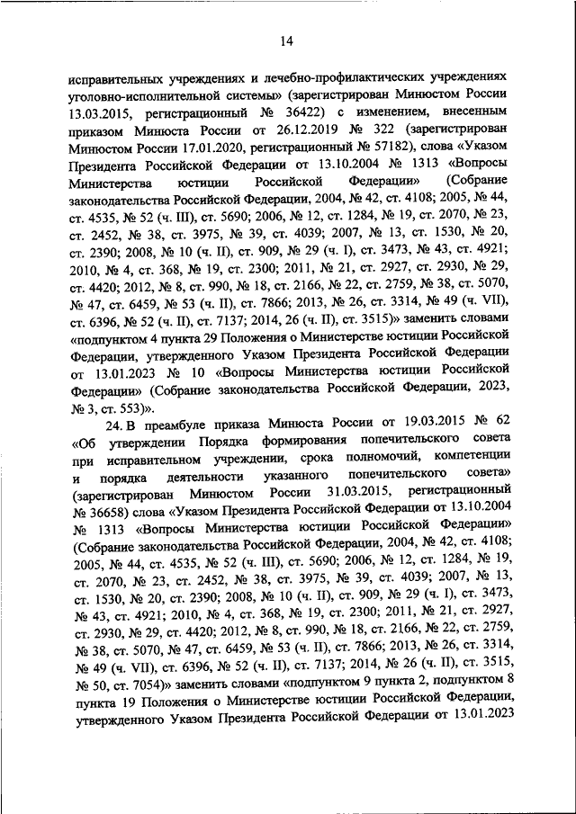 "О ВНЕСЕНИИ ИЗМЕНЕНИЙ В ПРИКАЗЫ МИНИСТЕРСТВА ЮСТИЦИИ РОССИЙСКОЙ ФЕДЕРАЦИИ В СВЯЗИ С ПРИНЯТИЕМ УКАЗА ПРЕЗИДЕНТА РОССИЙСКОЙ ФЕДЕРАЦИИ ОТ 13.01.2023 N 10 "ВОПРОСЫ МИНИСТЕРСТВА ЮСТИЦИИ РОССИЙСКОЙ ФЕДЕРАЦИИ"