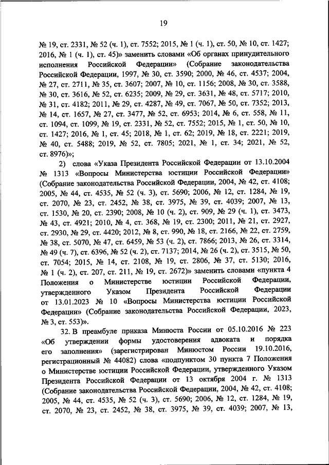 "О ВНЕСЕНИИ ИЗМЕНЕНИЙ В ПРИКАЗЫ МИНИСТЕРСТВА ЮСТИЦИИ РОССИЙСКОЙ ФЕДЕРАЦИИ В СВЯЗИ С ПРИНЯТИЕМ УКАЗА ПРЕЗИДЕНТА РОССИЙСКОЙ ФЕДЕРАЦИИ ОТ 13.01.2023 N 10 "ВОПРОСЫ МИНИСТЕРСТВА ЮСТИЦИИ РОССИЙСКОЙ ФЕДЕРАЦИИ"