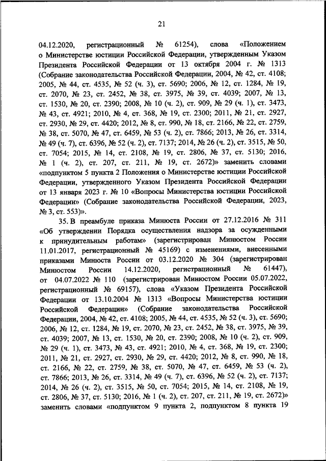 "О ВНЕСЕНИИ ИЗМЕНЕНИЙ В ПРИКАЗЫ МИНИСТЕРСТВА ЮСТИЦИИ РОССИЙСКОЙ ФЕДЕРАЦИИ В СВЯЗИ С ПРИНЯТИЕМ УКАЗА ПРЕЗИДЕНТА РОССИЙСКОЙ ФЕДЕРАЦИИ ОТ 13.01.2023 N 10 "ВОПРОСЫ МИНИСТЕРСТВА ЮСТИЦИИ РОССИЙСКОЙ ФЕДЕРАЦИИ"