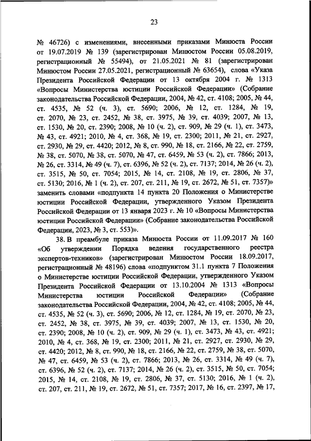 "О ВНЕСЕНИИ ИЗМЕНЕНИЙ В ПРИКАЗЫ МИНИСТЕРСТВА ЮСТИЦИИ РОССИЙСКОЙ ФЕДЕРАЦИИ В СВЯЗИ С ПРИНЯТИЕМ УКАЗА ПРЕЗИДЕНТА РОССИЙСКОЙ ФЕДЕРАЦИИ ОТ 13.01.2023 N 10 "ВОПРОСЫ МИНИСТЕРСТВА ЮСТИЦИИ РОССИЙСКОЙ ФЕДЕРАЦИИ"