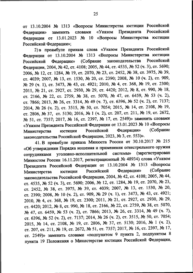 "О ВНЕСЕНИИ ИЗМЕНЕНИЙ В ПРИКАЗЫ МИНИСТЕРСТВА ЮСТИЦИИ РОССИЙСКОЙ ФЕДЕРАЦИИ В СВЯЗИ С ПРИНЯТИЕМ УКАЗА ПРЕЗИДЕНТА РОССИЙСКОЙ ФЕДЕРАЦИИ ОТ 13.01.2023 N 10 "ВОПРОСЫ МИНИСТЕРСТВА ЮСТИЦИИ РОССИЙСКОЙ ФЕДЕРАЦИИ"