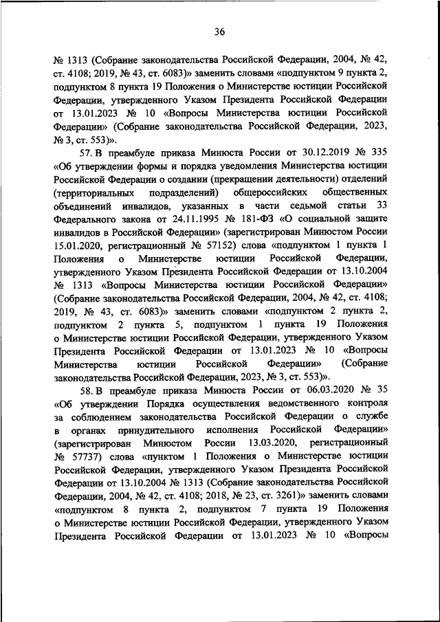 "О ВНЕСЕНИИ ИЗМЕНЕНИЙ В ПРИКАЗЫ МИНИСТЕРСТВА ЮСТИЦИИ РОССИЙСКОЙ ФЕДЕРАЦИИ В СВЯЗИ С ПРИНЯТИЕМ УКАЗА ПРЕЗИДЕНТА РОССИЙСКОЙ ФЕДЕРАЦИИ ОТ 13.01.2023 N 10 "ВОПРОСЫ МИНИСТЕРСТВА ЮСТИЦИИ РОССИЙСКОЙ ФЕДЕРАЦИИ"