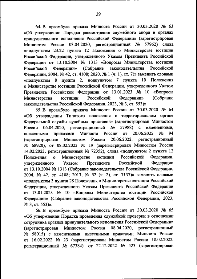 "О ВНЕСЕНИИ ИЗМЕНЕНИЙ В ПРИКАЗЫ МИНИСТЕРСТВА ЮСТИЦИИ РОССИЙСКОЙ ФЕДЕРАЦИИ В СВЯЗИ С ПРИНЯТИЕМ УКАЗА ПРЕЗИДЕНТА РОССИЙСКОЙ ФЕДЕРАЦИИ ОТ 13.01.2023 N 10 "ВОПРОСЫ МИНИСТЕРСТВА ЮСТИЦИИ РОССИЙСКОЙ ФЕДЕРАЦИИ"