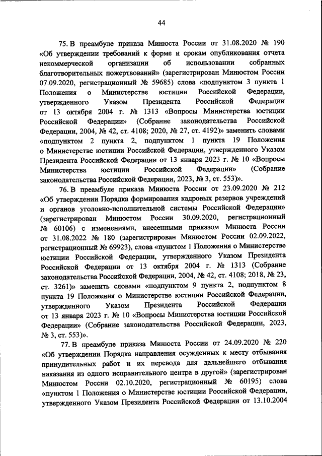 "О ВНЕСЕНИИ ИЗМЕНЕНИЙ В ПРИКАЗЫ МИНИСТЕРСТВА ЮСТИЦИИ РОССИЙСКОЙ ФЕДЕРАЦИИ В СВЯЗИ С ПРИНЯТИЕМ УКАЗА ПРЕЗИДЕНТА РОССИЙСКОЙ ФЕДЕРАЦИИ ОТ 13.01.2023 N 10 "ВОПРОСЫ МИНИСТЕРСТВА ЮСТИЦИИ РОССИЙСКОЙ ФЕДЕРАЦИИ"