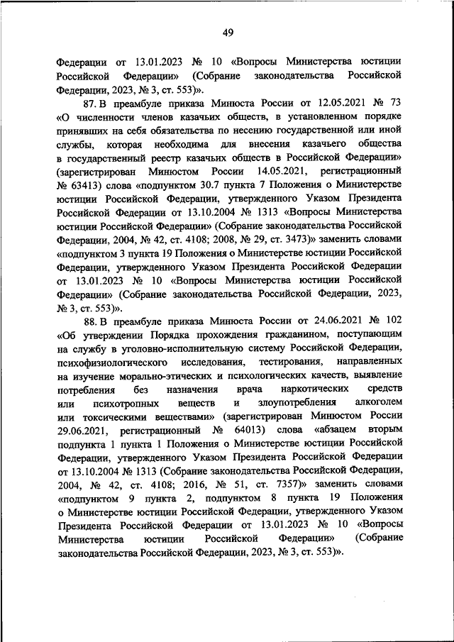 "О ВНЕСЕНИИ ИЗМЕНЕНИЙ В ПРИКАЗЫ МИНИСТЕРСТВА ЮСТИЦИИ РОССИЙСКОЙ ФЕДЕРАЦИИ В СВЯЗИ С ПРИНЯТИЕМ УКАЗА ПРЕЗИДЕНТА РОССИЙСКОЙ ФЕДЕРАЦИИ ОТ 13.01.2023 N 10 "ВОПРОСЫ МИНИСТЕРСТВА ЮСТИЦИИ РОССИЙСКОЙ ФЕДЕРАЦИИ"