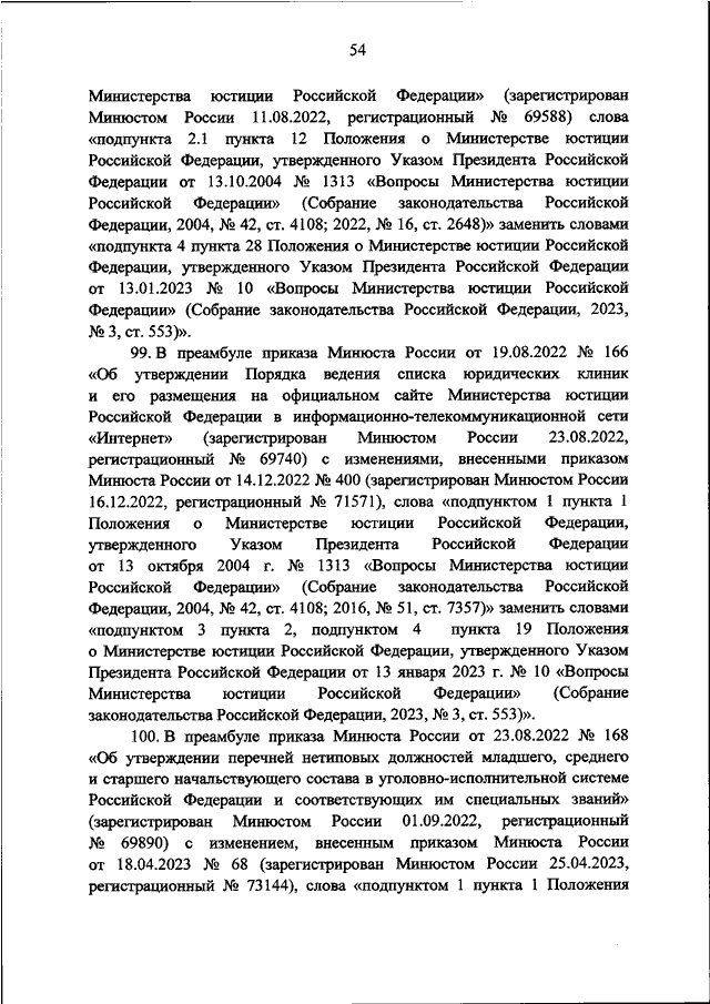 "О ВНЕСЕНИИ ИЗМЕНЕНИЙ В ПРИКАЗЫ МИНИСТЕРСТВА ЮСТИЦИИ РОССИЙСКОЙ ФЕДЕРАЦИИ В СВЯЗИ С ПРИНЯТИЕМ УКАЗА ПРЕЗИДЕНТА РОССИЙСКОЙ ФЕДЕРАЦИИ ОТ 13.01.2023 N 10 "ВОПРОСЫ МИНИСТЕРСТВА ЮСТИЦИИ РОССИЙСКОЙ ФЕДЕРАЦИИ"