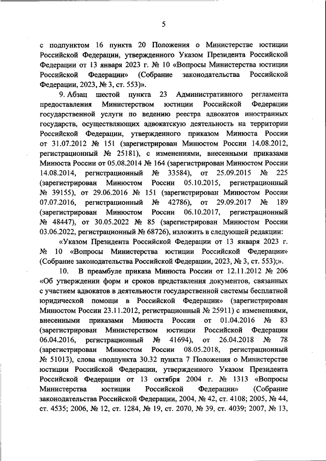 "О ВНЕСЕНИИ ИЗМЕНЕНИЙ В ПРИКАЗЫ МИНИСТЕРСТВА ЮСТИЦИИ РОССИЙСКОЙ ФЕДЕРАЦИИ В СВЯЗИ С ПРИНЯТИЕМ УКАЗА ПРЕЗИДЕНТА РОССИЙСКОЙ ФЕДЕРАЦИИ ОТ 13.01.2023 N 10 "ВОПРОСЫ МИНИСТЕРСТВА ЮСТИЦИИ РОССИЙСКОЙ ФЕДЕРАЦИИ"