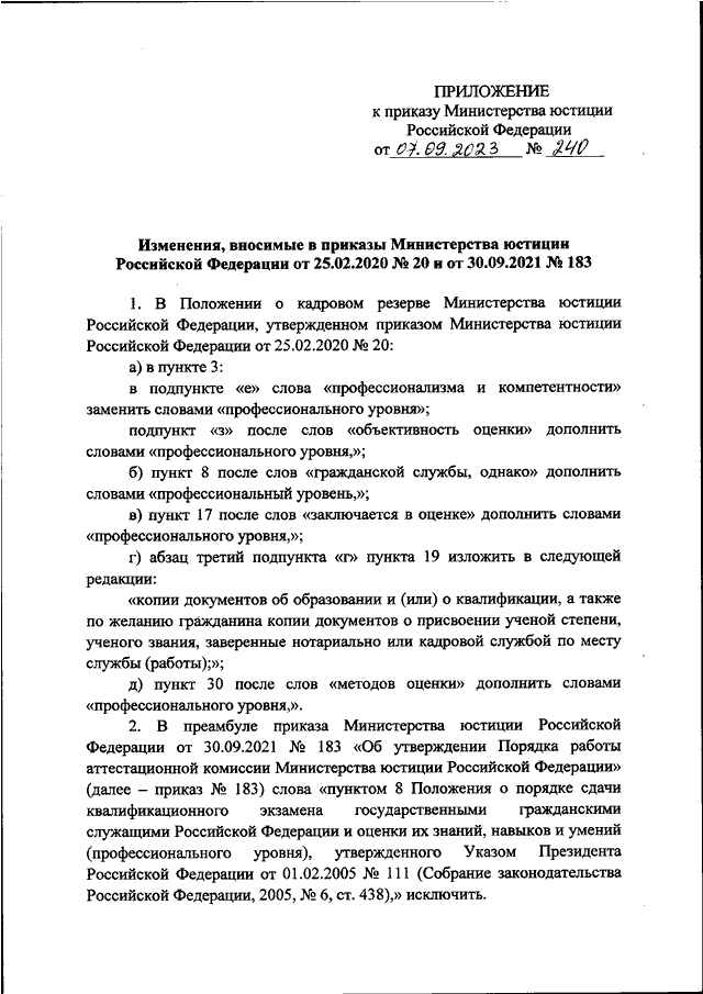 ПРИКАЗ Минюста РФ от 07.09.2023 N 240