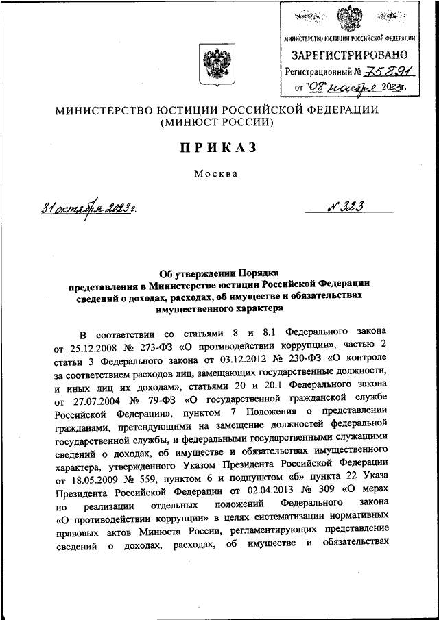 ПРИКАЗ Минюста РФ от 31.10.2023 N 323