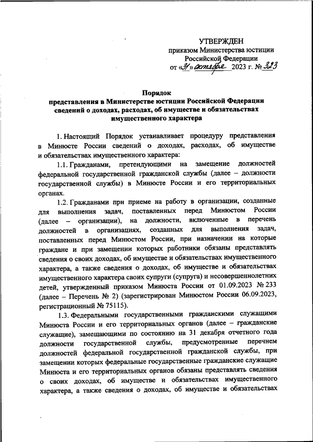 ПРИКАЗ Минюста РФ от 31.10.2023 N 323