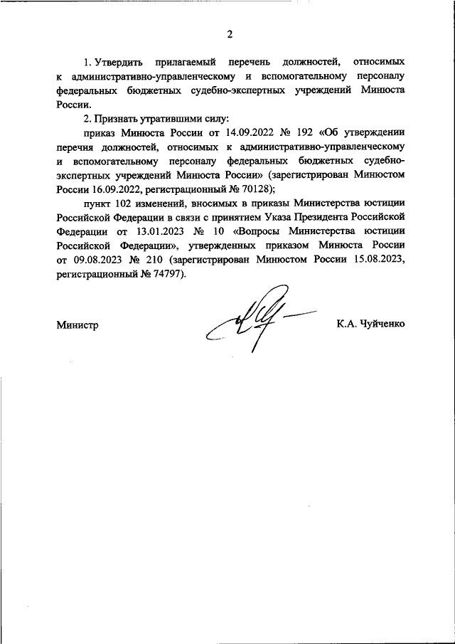 "ОБ УТВЕРЖДЕНИИ ПЕРЕЧНЯ ДОЛЖНОСТЕЙ, ОТНОСИМЫХ К АДМИНИСТРАТИВНО - УПРАВЛЕНЧЕСКОМУ И ВСПОМОГАТЕЛЬНОМУ ПЕРСОНАЛУ ФЕДЕРАЛЬНЫХ БЮДЖЕТНЫХ СУДЕБНО - ЭКСПЕРТНЫХ УЧРЕЖДЕНИЙ МИНЮСТА РОССИИ"