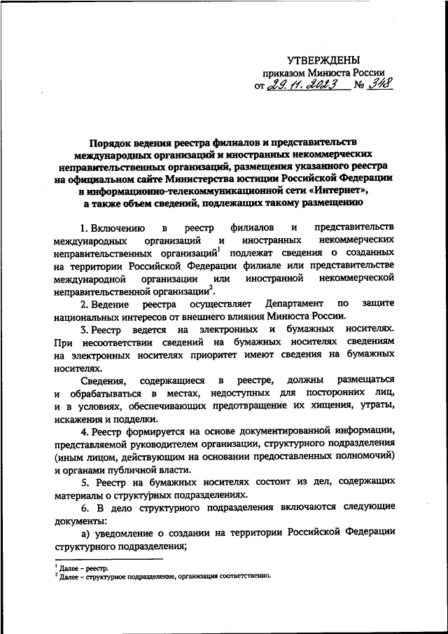 ПРИКАЗ Минюста РФ от 29.11.2023 N 348