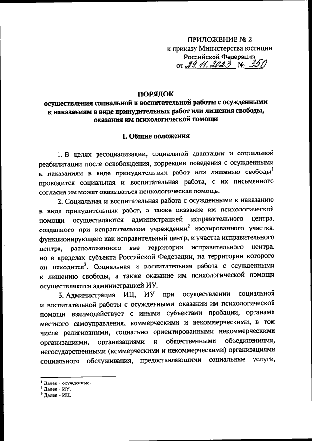 ПРИКАЗ Минюста РФ от 29.11.2023 N 350