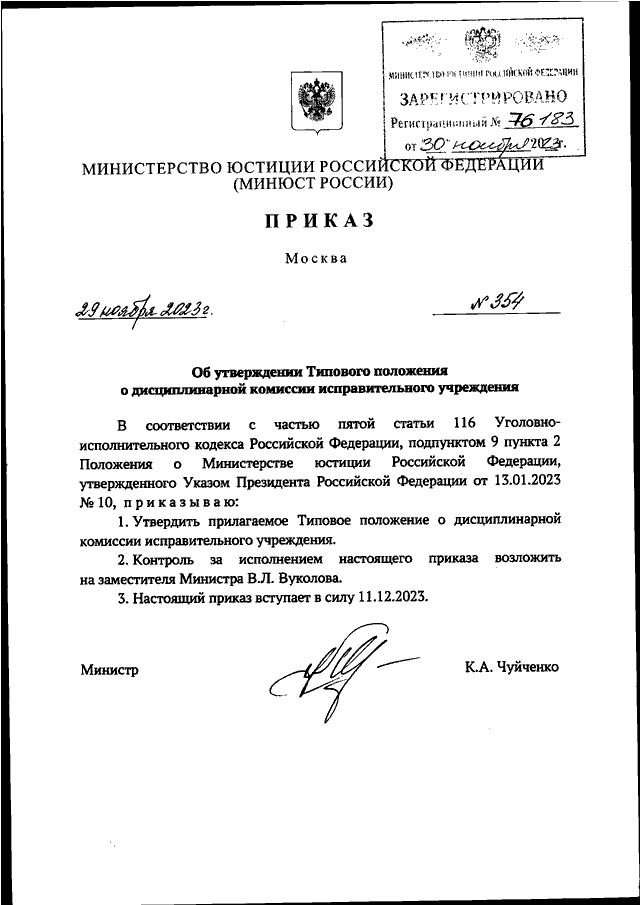 ПРИКАЗ Минюста РФ от 29.11.2023 N 354