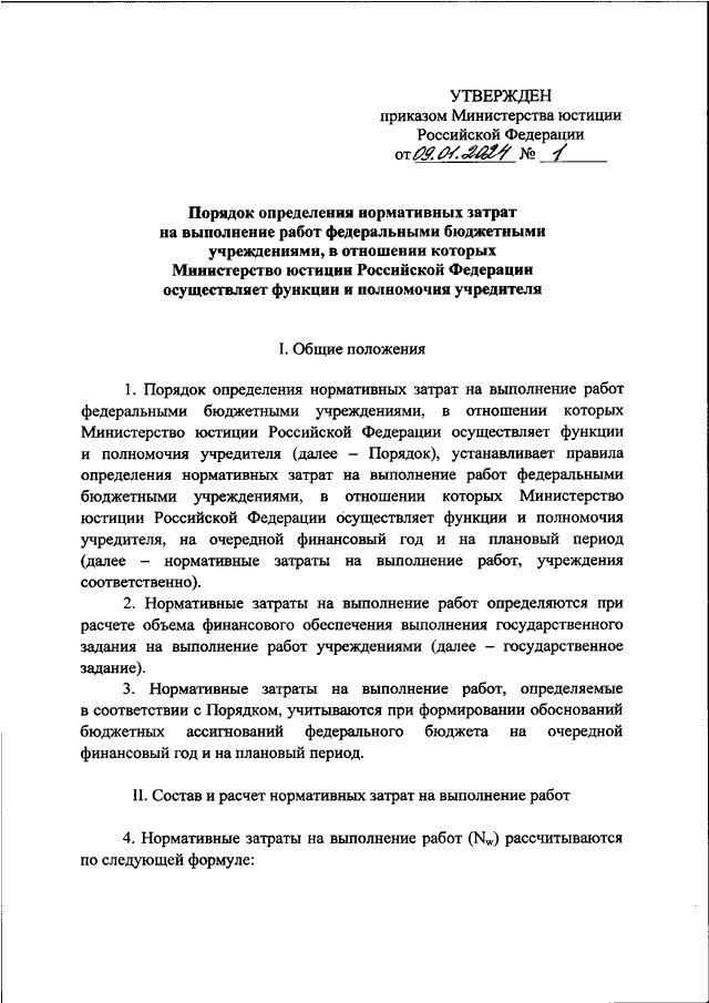 ПРИКАЗ Минюста РФ от 09.01.2024 N 1