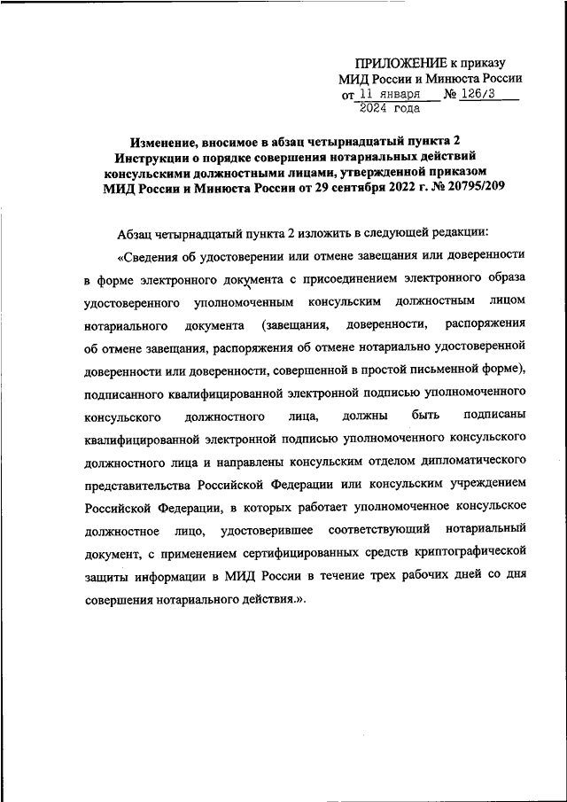ПРИКАЗ МИД РФ N 126, Минюста РФ N 3 от 11.01.2024