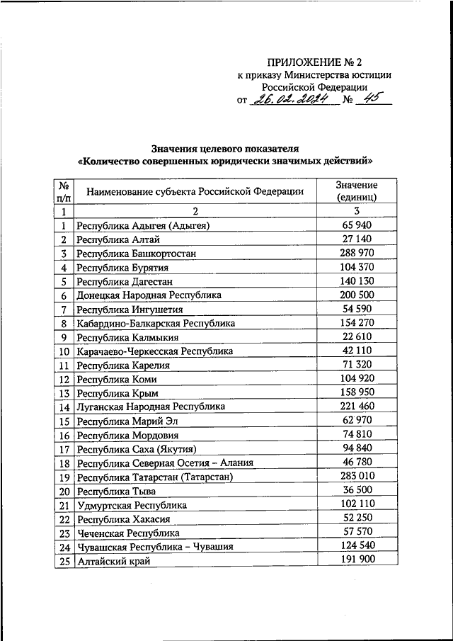 ПРИКАЗ Минюста РФ от 26.02.2024 N 45