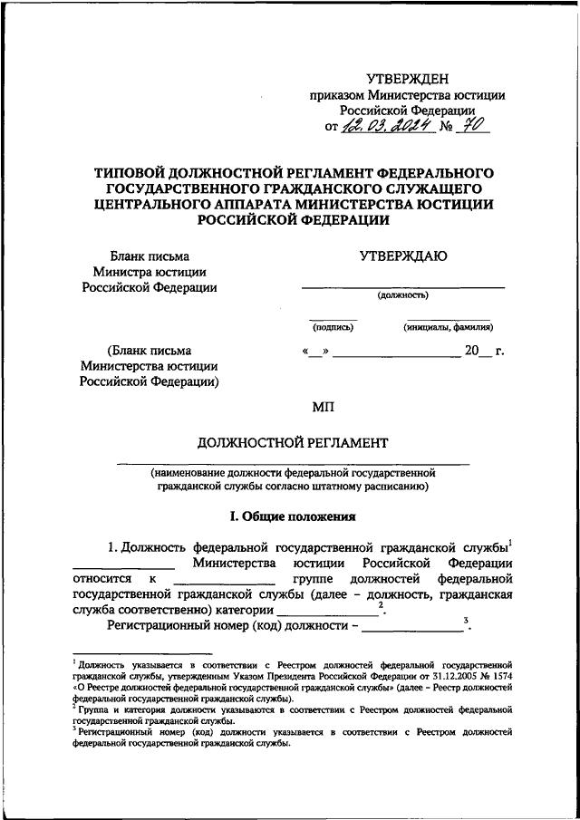 ПРИКАЗ Минюста РФ от 12.03.2024 N 70