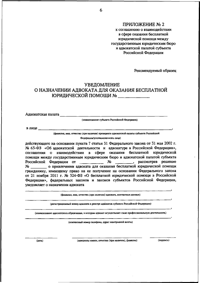 "ОБ УТВЕРЖДЕНИИ ФОРМЫ СОГЛАШЕНИЯ О ВЗАИМОДЕЙСТВИИ В СФЕРЕ ОКАЗАНИЯ БЕСПЛАТНОЙ ЮРИДИЧЕСКОЙ ПОМОЩИ МЕЖДУ ГОСУДАРСТВЕННЫМ ЮРИДИЧЕСКИМ БЮРО И АДВОКАТСКОЙ ПАЛАТОЙ СУБЪЕКТА РОССИЙСКОЙ ФЕДЕРАЦИИ"
