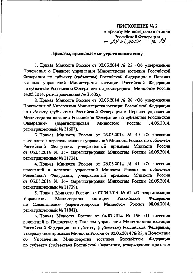 ПРИКАЗ Минюста РФ от 29.03.2024 N 89
