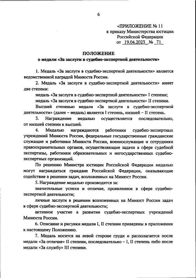 "О ВНЕСЕНИИ ИЗМЕНЕНИЙ В ПРИКАЗ МИНИСТЕРСТВА ЮСТИЦИИ РОССИЙСКОЙ ФЕДЕРАЦИИ ОТ 19.04.2023 N 71"