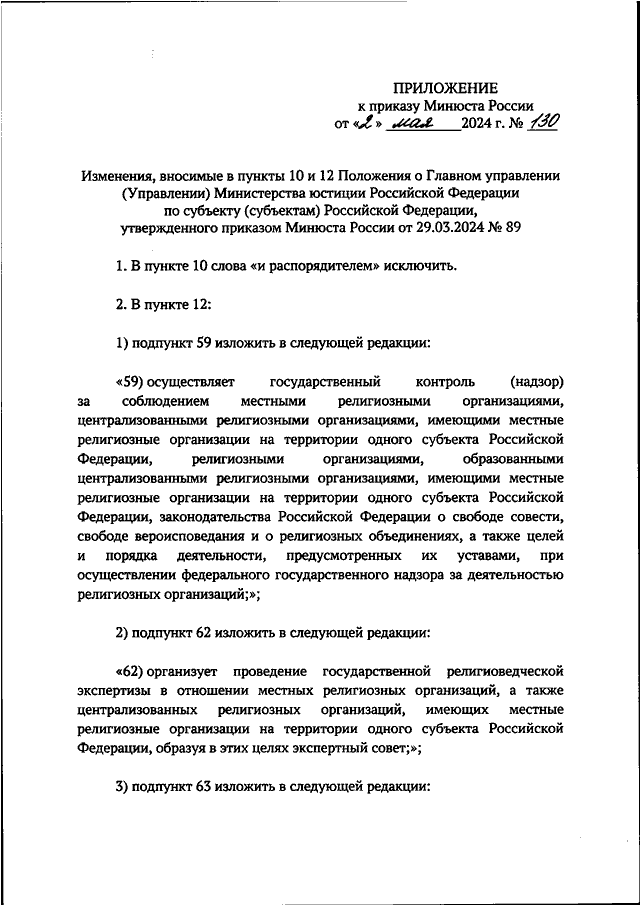 ПРИКАЗ Минюста РФ от 02.05.2024 N 130