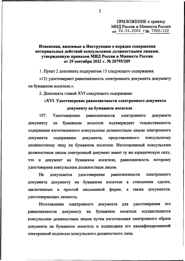 ПРИКАЗ МИД РФ N 7998, Минюста РФ N 122 от 24.04.2024