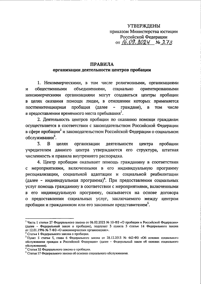 ПРИКАЗ Минюста РФ от 16.09.2024 N 278