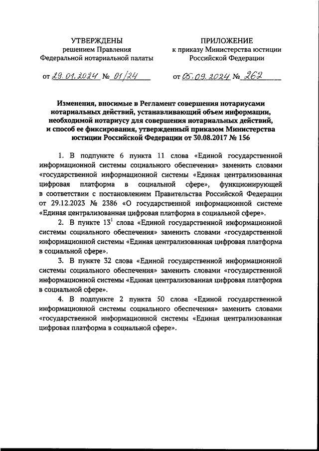 ПРИКАЗ Минюста РФ от 05.09.2024 N 262