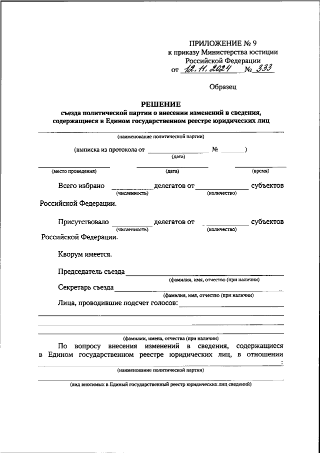 ПРИКАЗ Минюста РФ от 12.11.2024 N 333