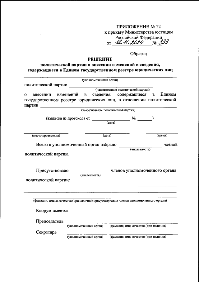 ПРИКАЗ Минюста РФ от 12.11.2024 N 333