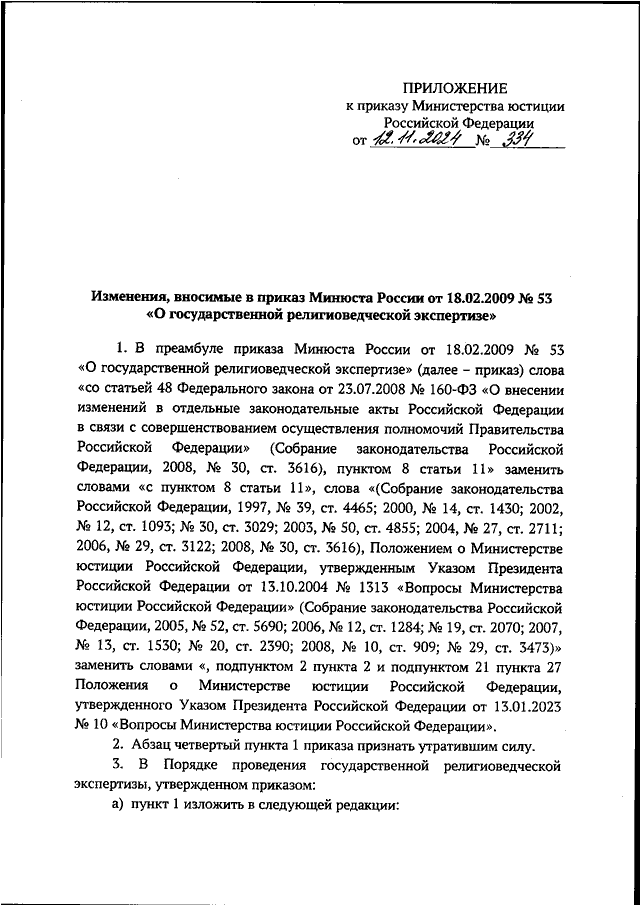 ПРИКАЗ Минюста РФ от 12.11.2024 N 334