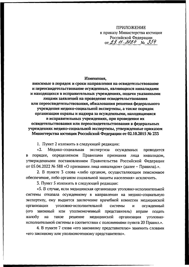 ПРИКАЗ Минюста РФ от 29.11.2024 N 354