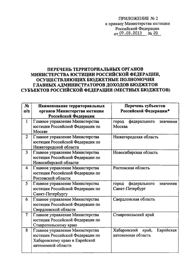 ПРИКАЗ Минюста РФ от 07.03.2013 N 29