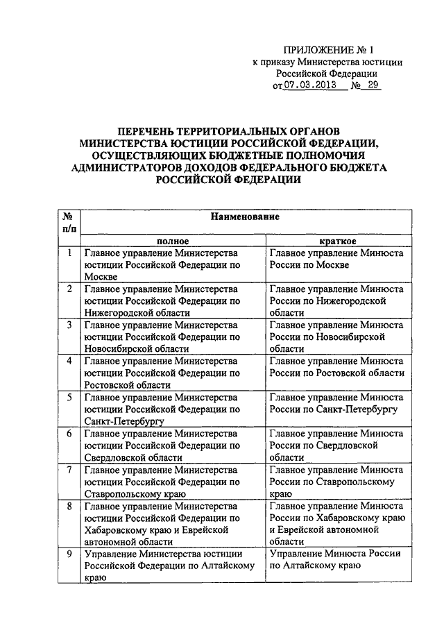 ПРИКАЗ Минюста РФ от 07.03.2013 N 29