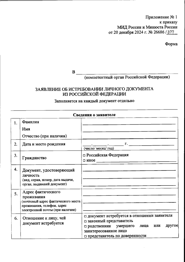 ПРИКАЗ МИД РФ N 26686, Минюста РФ N 377 от 20.12.2024