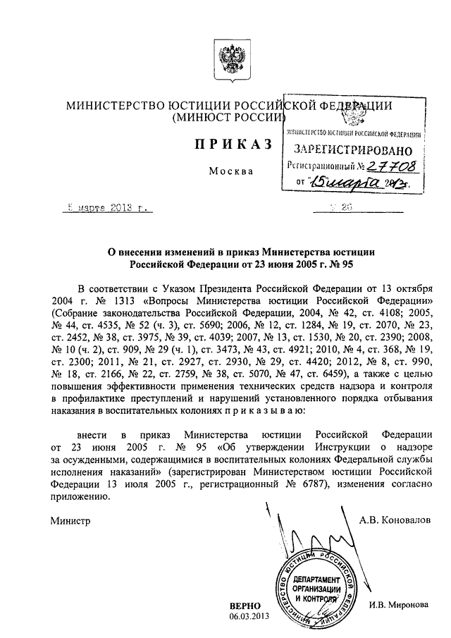 ПРИКАЗ Минюста РФ от 05.03.2013 N 26