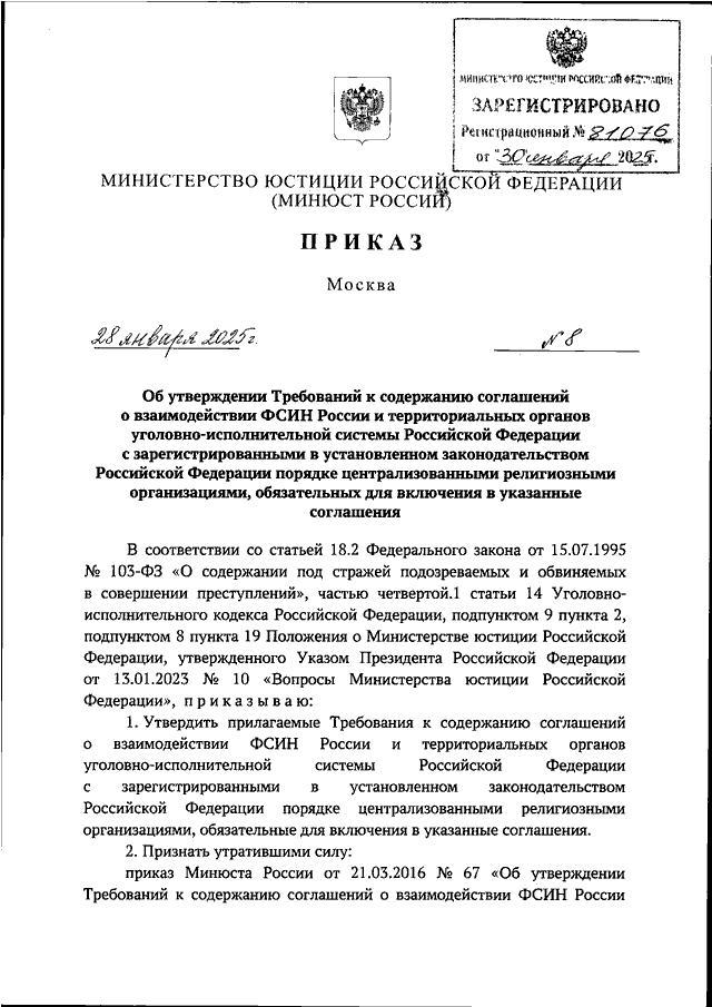 ПРИКАЗ Минюста РФ от 28.01.2025 N 8