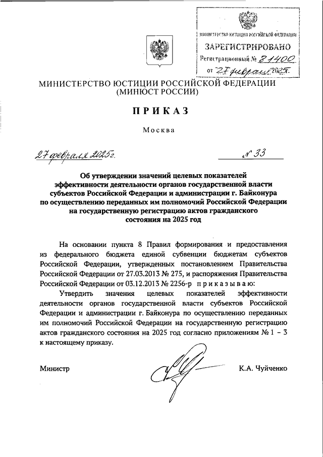 ПРИКАЗ Минюста РФ от 27.02.2025 N 33