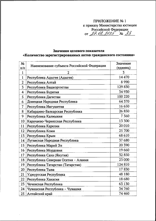 ПРИКАЗ Минюста РФ от 27.02.2025 N 33